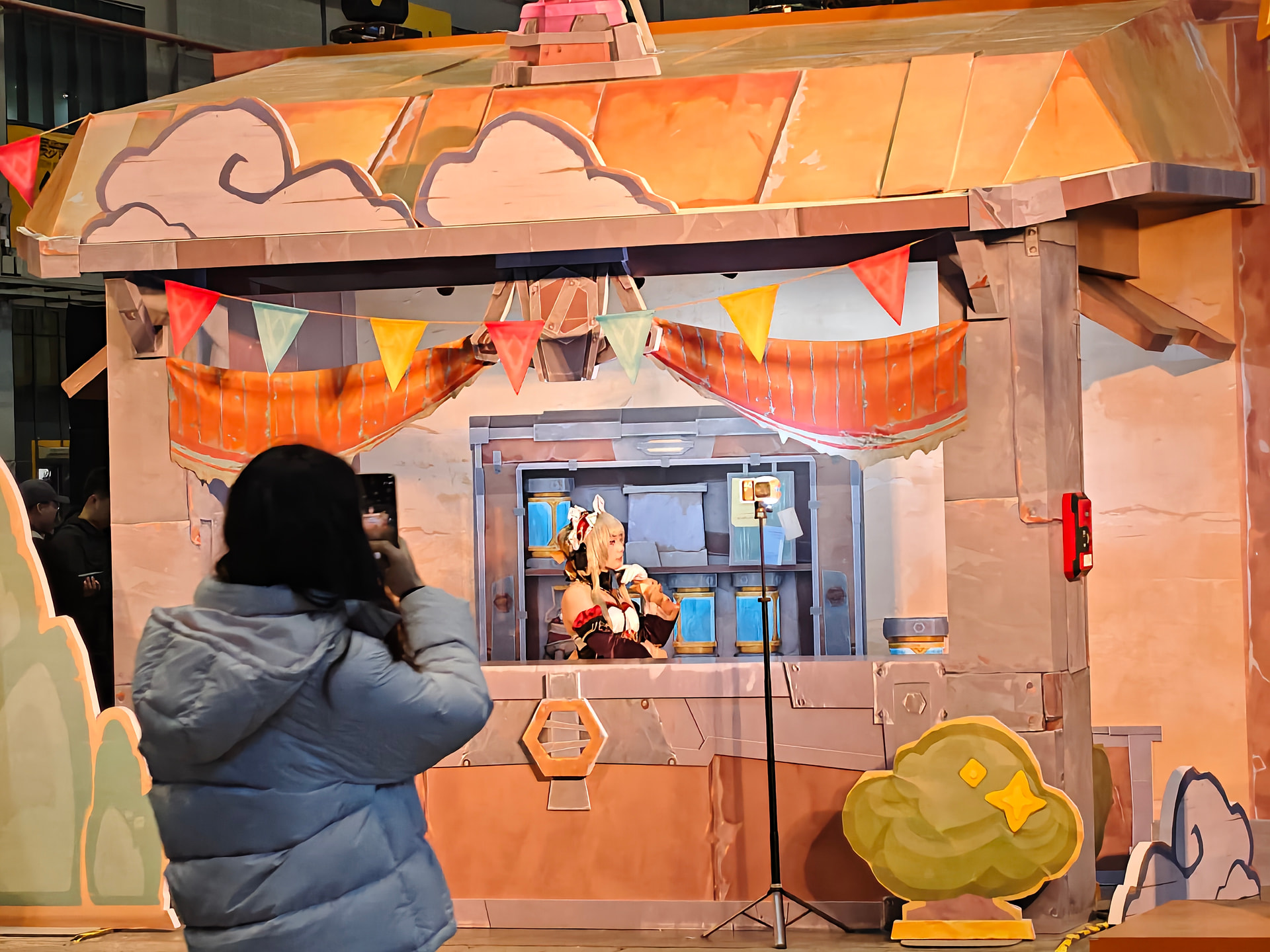 在等候的期间,看到还有绝区零的邦布的模型,我快马加鞭般得冲了过去拍了一下照。在那边也跟其他人搭了一下话,然后突然手机微信电话响了。嗨呀,原来是人到了。但是手机要没电了四处借充电宝。但由于跟别人是第一次见面也不好意思充太久,于是赶紧打了电话过来。