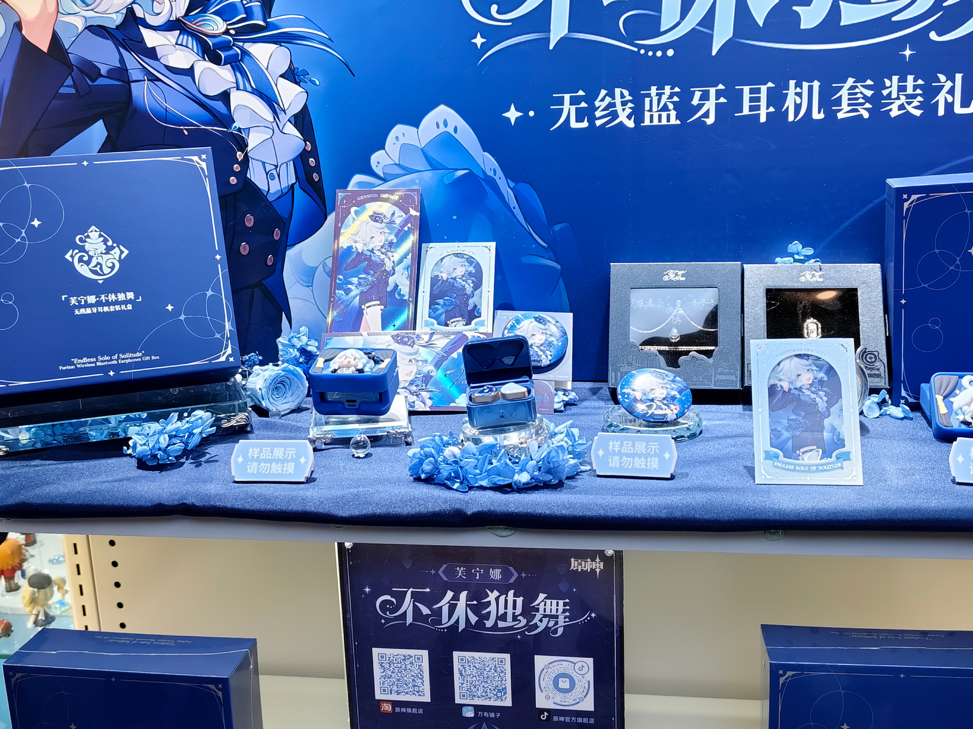 拍完照后,也顺路进了店里去看了一下耳机相关的东西。不过遗憾的是,抽奖活动结束了,那就没什么办法了。但是本着来都来了还是买点东西再走吧原则,买了一个很喜欢的角色芙宁娜的徽章跟玩偶挂件走了。(芙芙可爱捏