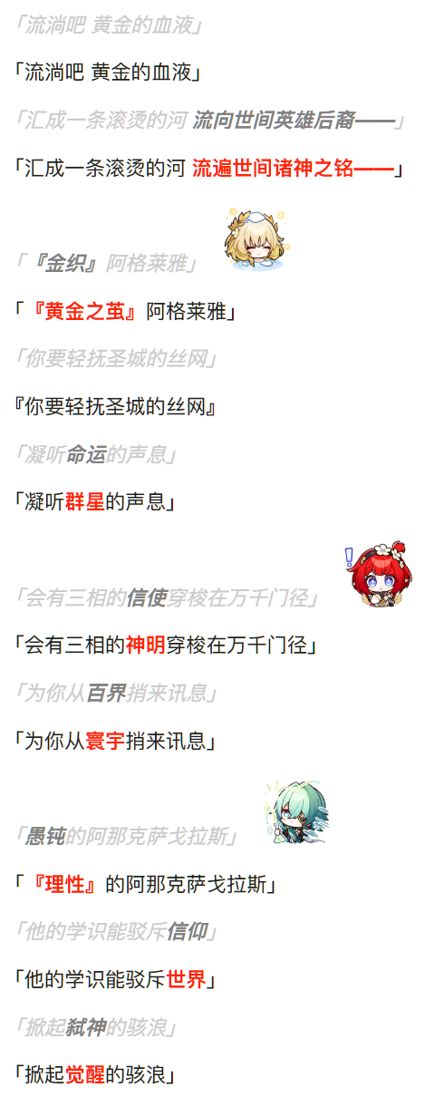 以上便是我个人对于铁道翁法罗斯印象最深刻的几个文本(主线标题,3.4卡厄斯兰那判词,以及两个「翁法罗斯英雄纪」PV文案),以及自己对“喜剧”还有“浪漫”的一些考据,看法与思考。